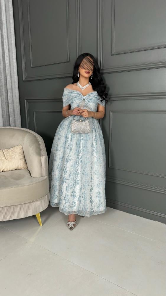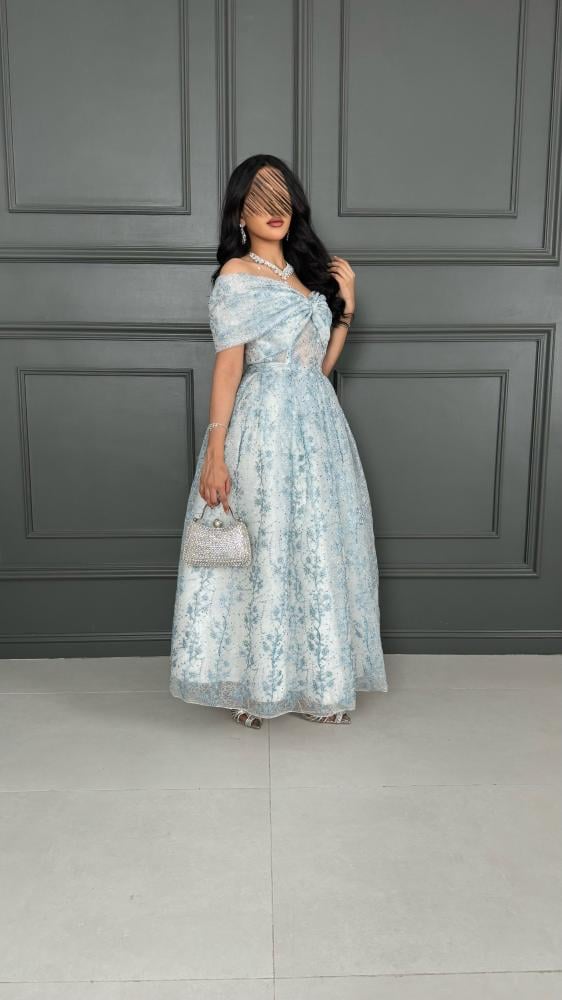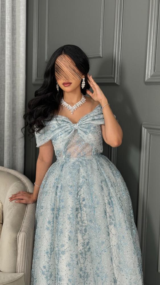 هذا الفستان السماوي هو تجسيد للأناقة والرقي، حيث يتميز بلونه الغني الذي يضفي لمسة من الفخامة على إطلالتك. يأتي بقصة ضيقة عند الخصر، تتسع برشاقة نحو الأسفل، مما يبرز منحنيات الجسم بطريقة ساحرة.