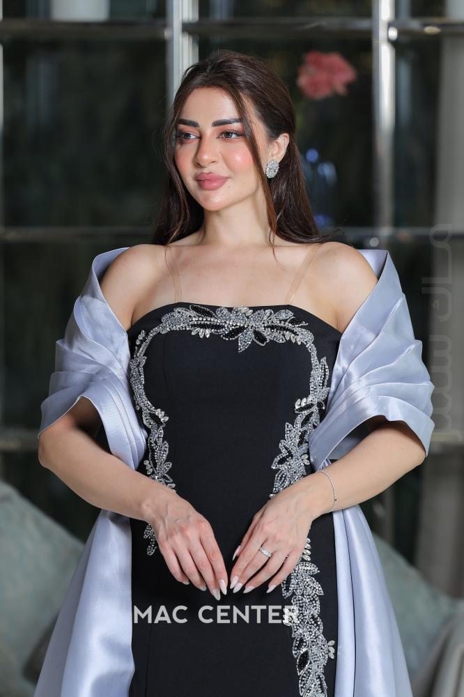 نوع القصه:فستان سهره طويل مطرز بتطريز يدوي بتفاصيل أنيقة بالأضافة إلى وشاح ناعم