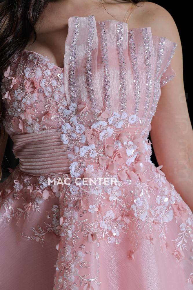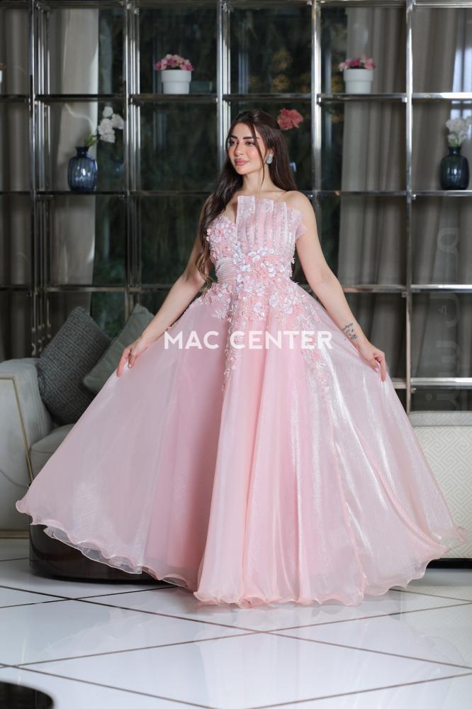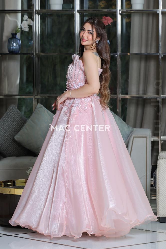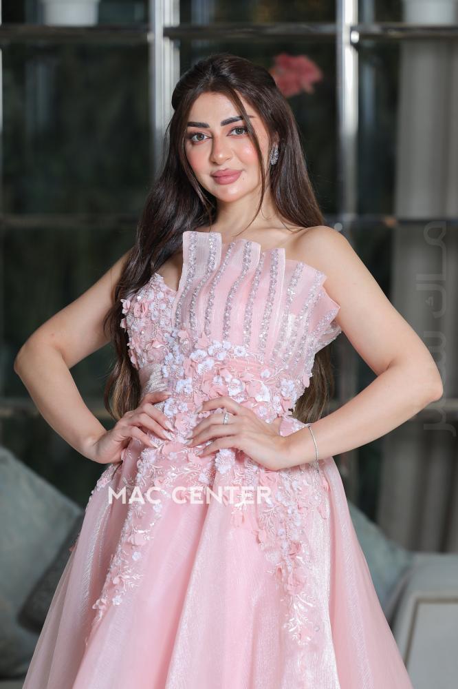 نوع القصه:فستان سهره طويل بكسرات تزين الصدر بأناقة ومزين بالورود والفصوص الأنيقة
